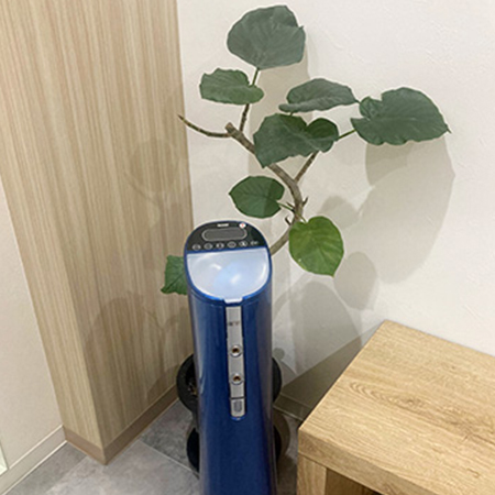オフィスホワイトニングの際、専用の薬剤を塗った後に、ライトを照射して歯を白くしていきます。長時間の照射でも負担が少なく、リラックスしてホワイトニングを受けていただけます。